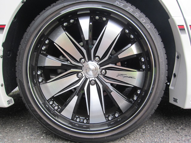 「アドミレイションエアロバンパー」や「20アルミホイール」「TEIN車高調」でカスタマイズされたラグジョアリーな外観