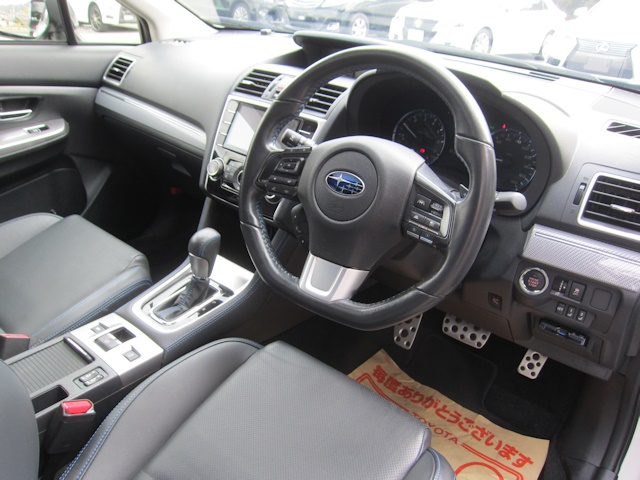 装備 ビルトインSDナビ・TV、サンルーフ、本革シート(ポジションメモリ付)、シートヒーター、アドバンスドセイフティパッケージ、プリクラッシュ、レーダークルーズ、スバルリアビークルディテクション、STIスポイラー、メッシュグリル、アイドリングストップ、ETC